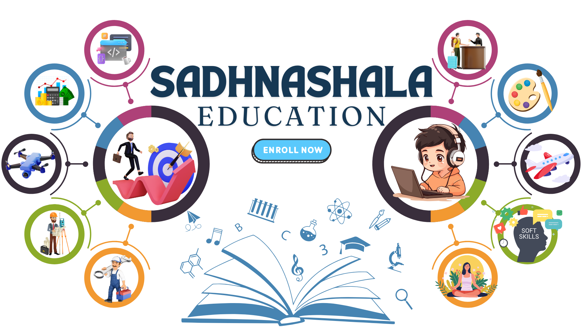SadhnaShala, a flagship education brand under Rudra Global Services, embodies our parent company’s vision of “Transforming Lives Through Sustainable Innovation. We combine Rudra’s global expertise in technology and infrastructure with India’s timeless wisdom of sadhna.